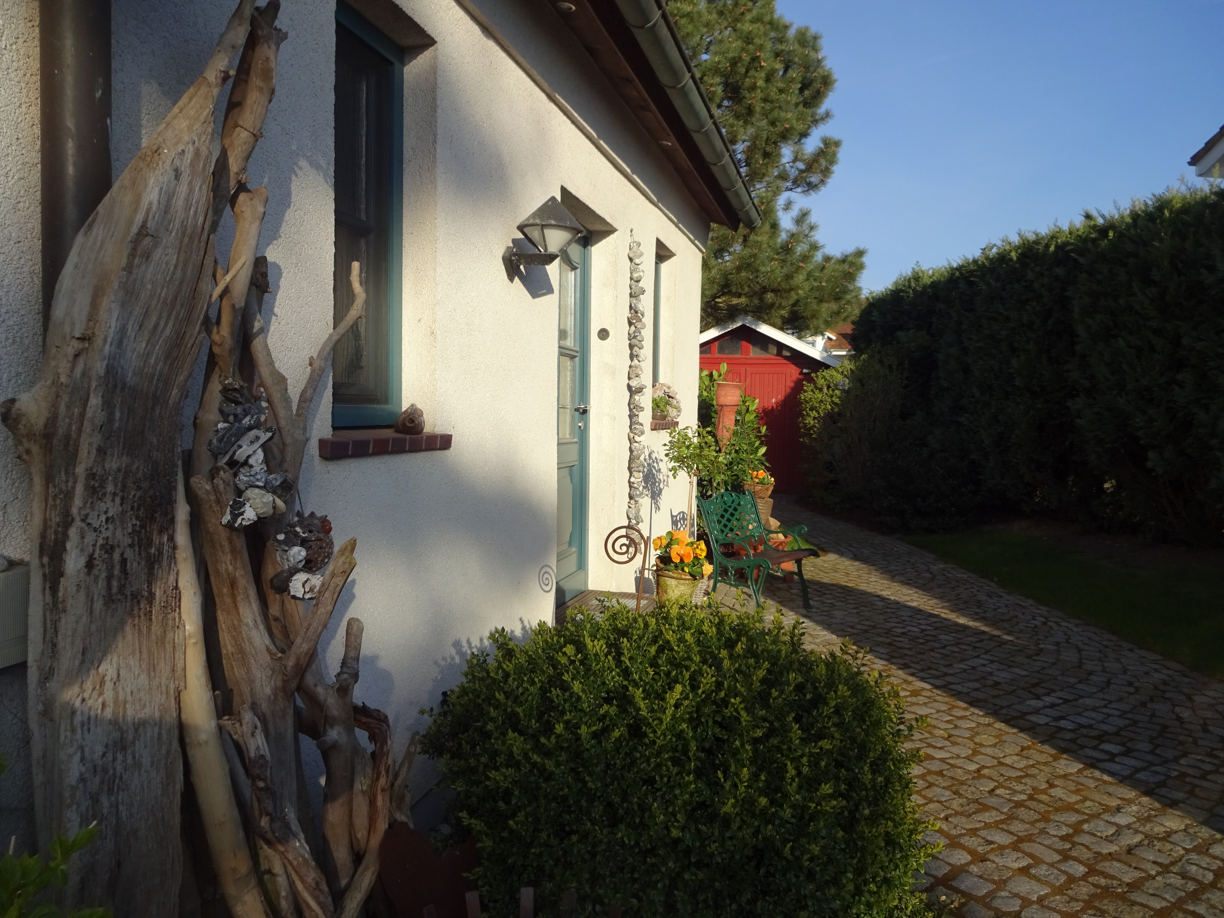 Eine eigene Terrasse mit Gartenmöbel + Strandkorb, sowie ein PKW Stellplatz am Haus gehören genauso dazu, wie auch 2 Fahrräder, ein Holzkohlegrill und ein kleines, separates Holzhaus als zusätzlicher Abstellraum.