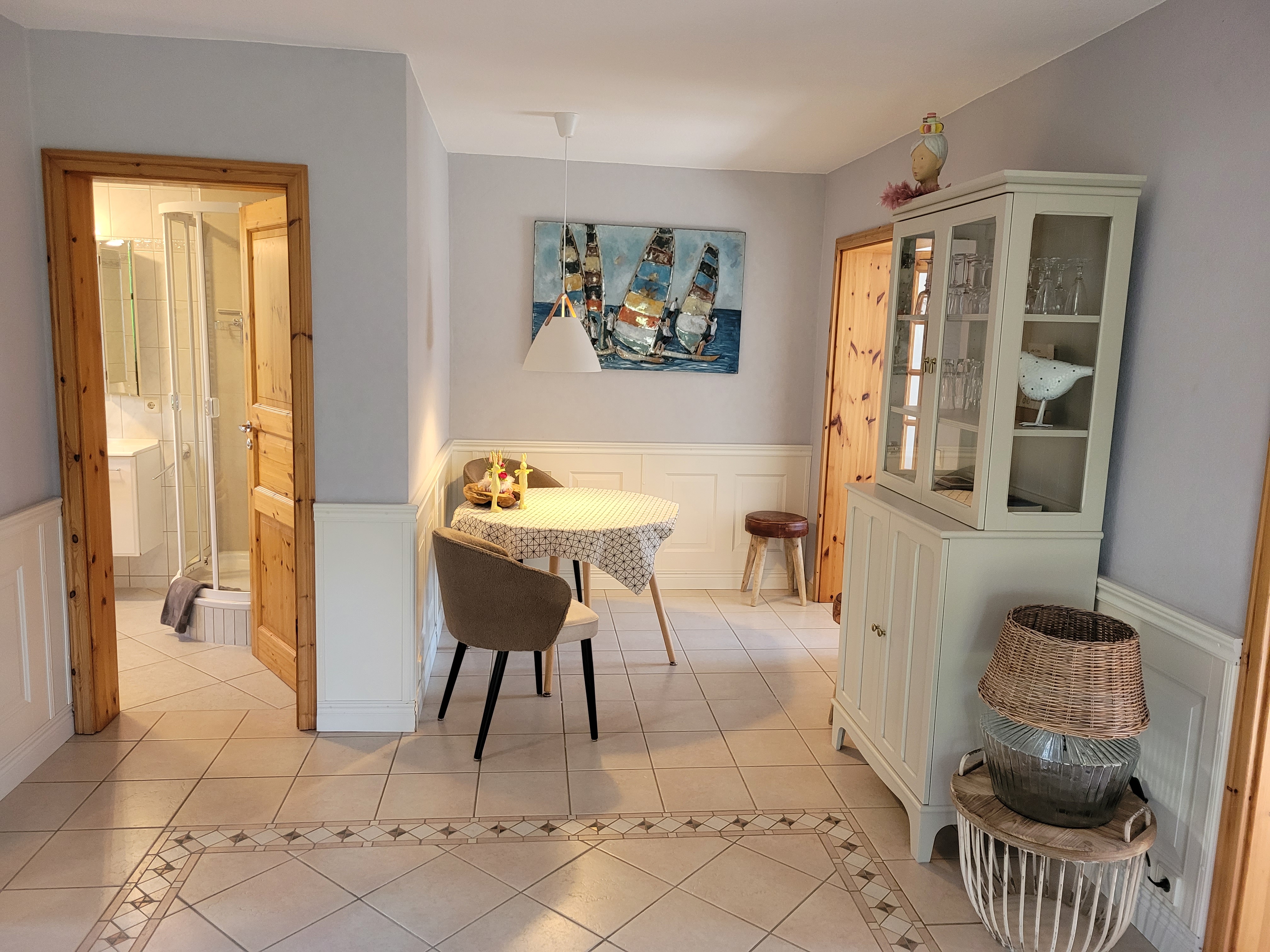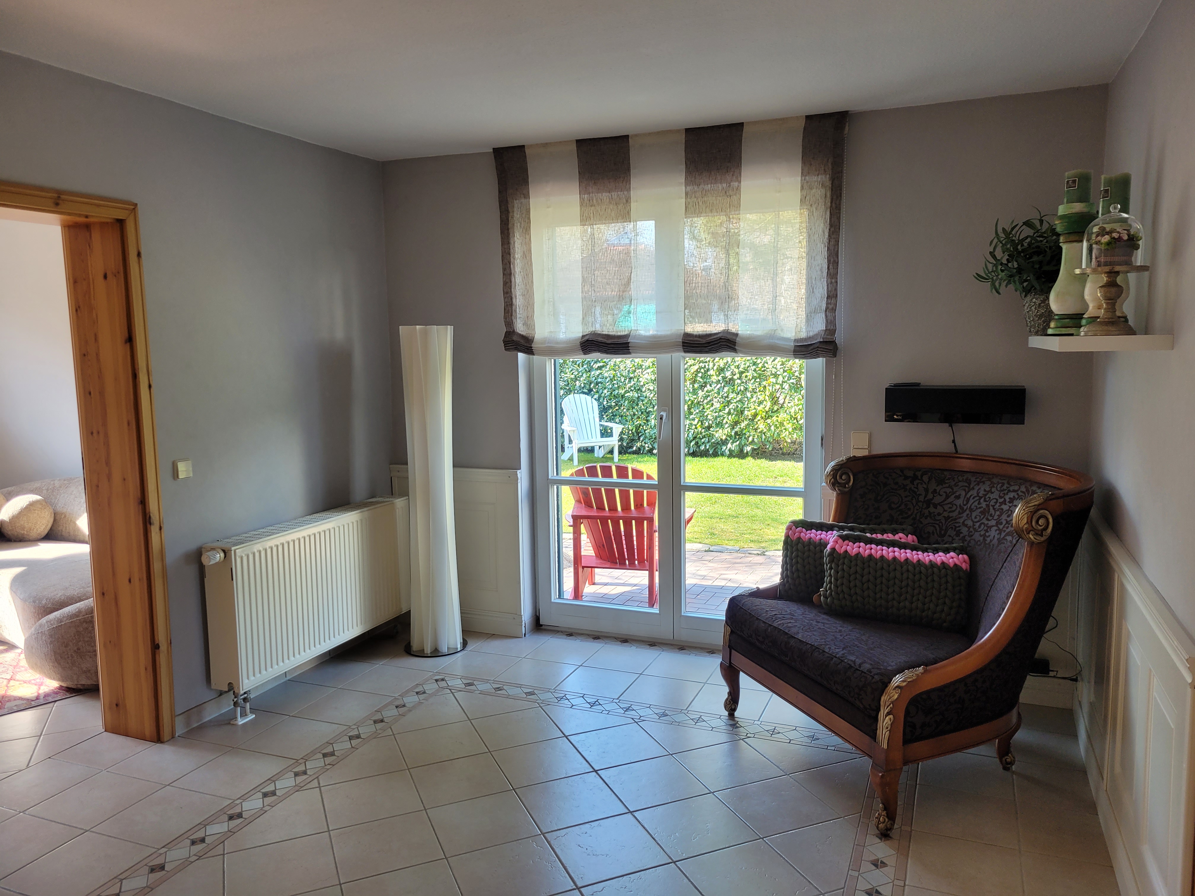 Die Ferienwohnung bietet zwei Gästen Platz und befindet sich im Erdgeschoss unseres Hauses, in Gollwitz auf der Insel Poel, weniger als 400m